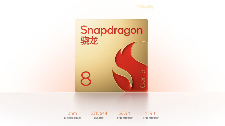 根据站哥的爆料,iQOO Z11 Turbo搭载第五代骁龙8旗舰芯片,目前搭载该芯片的机型有一加Ace6T和vivo S50 Pro mini,安兔兔综合性能跑分可以达到了330万+。得益于最新的3nm工艺制程,这款芯片的能效比媲美骁龙8Elite Gen5,能够带来更持久的续航体验。