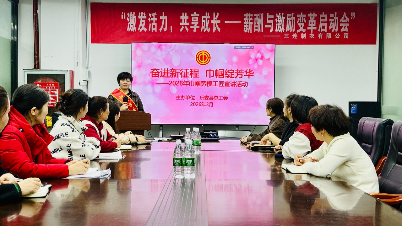 为深入弘扬劳模精神、劳动精神、工匠精神,推动党的创新理论走进生产一线、落地车间班组,近日,江西省乐安县总工会邀请市五一劳动奖章获得者、乐安县三连制衣有限公司副总经理魏金梅,在公司内部开展巾帼劳模工匠宣讲活动,以榜样力量凝聚职工干事创业动能,助力企业高质量发展。